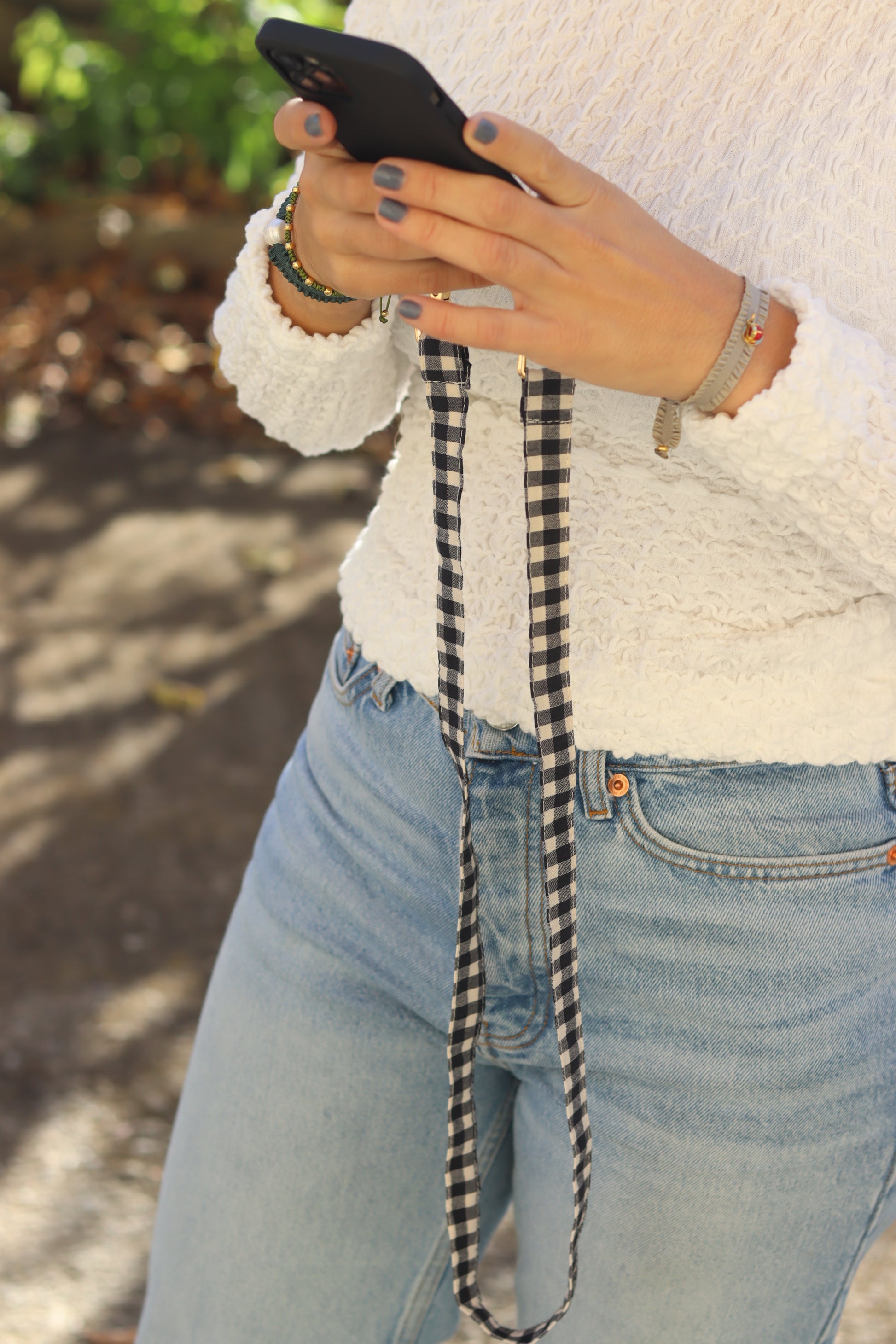 Cinta vichy para colgar el móvil